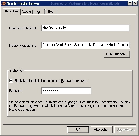 This pretty long list describes every directory, that Firefly should can for music files. If you have multiple Directories, simply put „,“ between the directories. - servername=MrG-Server-x2 FF